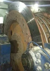 經專業部門到事故現場進行檢測,該提升機配置4 對 TP1-63 制動器頭,輸出正壓力分別為 5、15、15、20 kN;現場檢測制動盤偏擺量達到 3 mm,大大超出規程要求的 1 mm;液壓站zui高油壓為 3.3 MPa;全制動時液壓系統殘壓達到 1 MPa。